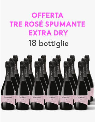 Il nuovo Tre Rosè Spumante con il suo elegante color rosa cipria e il suo sapore fruttato, fresco e leggero e un'importante base di Glera presenta le stesse caratteristiche del Prosecco Rosè e risponde quindi a questa crescente ed emergente richiesta degli amanti delle bollicine rosa.