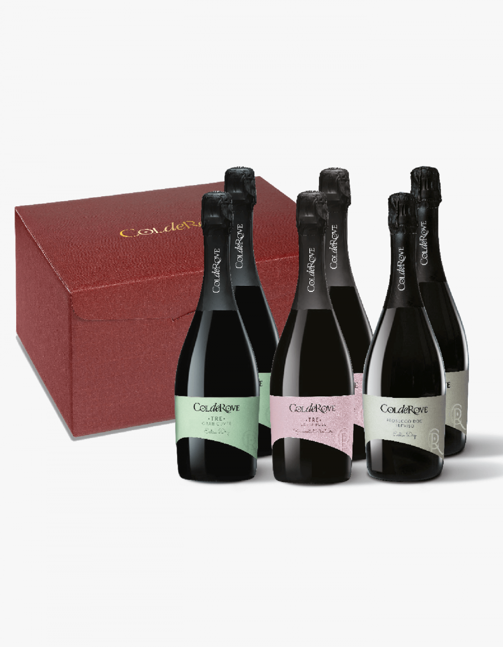 Questo Astuccio Regalo racchiude 2 bottiglie di Tre Gran Cuvée Extra Dry, 2 bottiglie di Tre Rosé e 2 bottiglie di Prosecco Valdobbiadene Superiore DOCG: sei bottiglie per brindare con gusto e autenticità.
