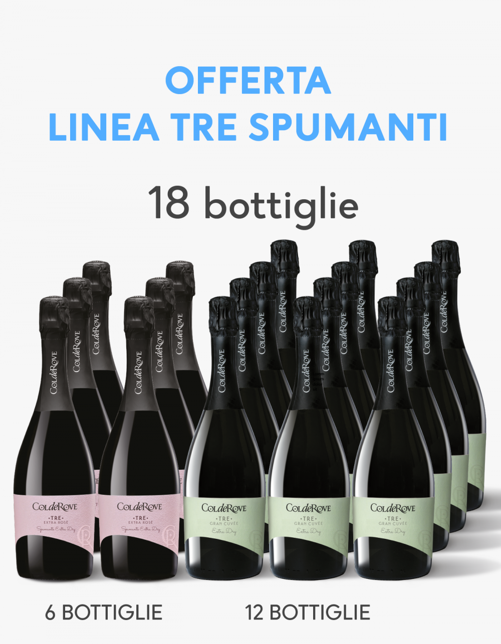 - 12 bottiglie di Spumante TRE Gran Cuvèe Extra Dry - leggero e versatile, ideale a tutto pasto, nel brindisi e come aperitivo. E’ uno spumante dal sapore asciutto e gradevolmente amarognolo, ha un perlage sottile ed intenso e la sua spuma è ricca e persistente. Grad: vol. 11 % Btg: 0,75 l.