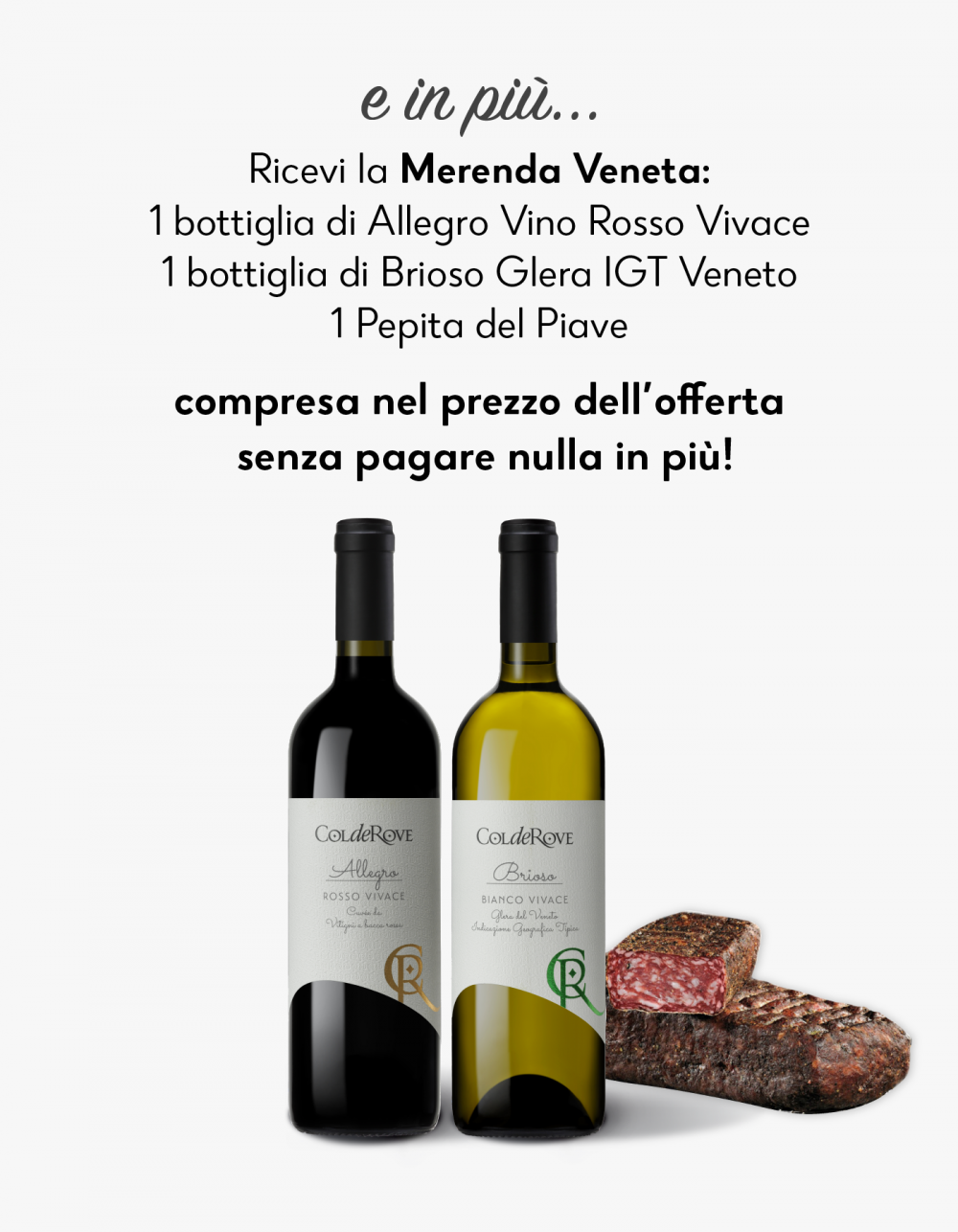 1 bottiglia di Allegro Rosso Vivace: vino leggero animato da microbollicine. Vinoso, dai sentori di frutti rossi di bosco. Scorrevole ed armonico, di medio corpo. Versatile negli accostamenti a tavola, dai salumi, primi piatti di terra al maiale alla brace. Alcol: 11.5 % vol. Btg: 0,75cl.